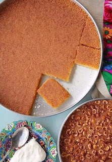 ندخلها الفرن على درجه حرارة 180 درجه لمدة 20 دقيقة، ونسقيها اول ما تطلع من الفرن بشربات خفيف سخن.
